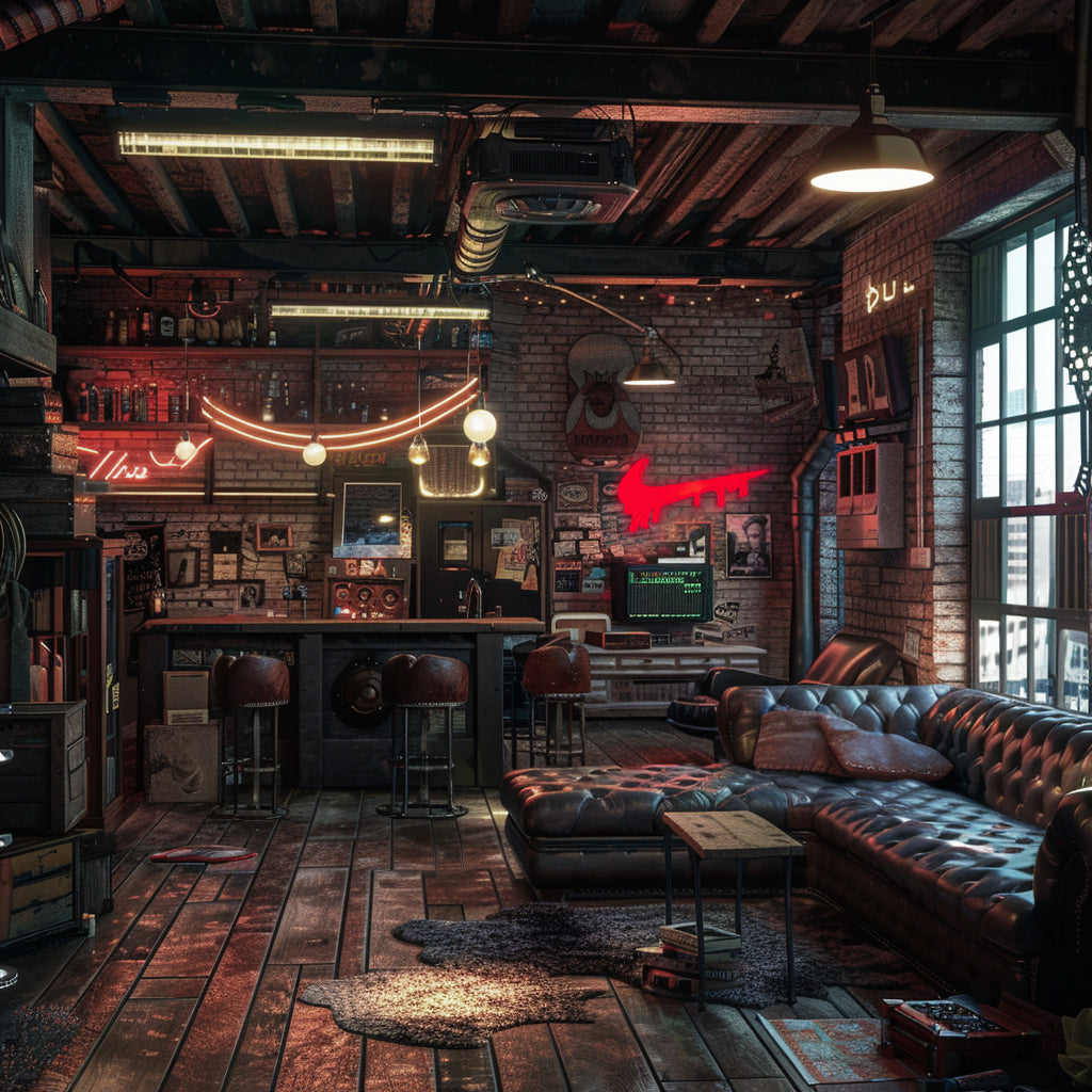 Can be wall mounted (mounting loop included) or placed on a table or on a bookshelf. Great for bedrooms, man caves, garages. Has two brightness settings half and maximum brightness.